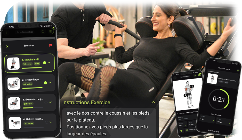 ► Pendant la séance que je t’aurais préparé, progresse exercice après exercice dans un « pas-à-pas » didactique qui suivra MES RECOMMANDATIONS en matières de séries, de répétitions et en t’indiquant ton temps de repos.
